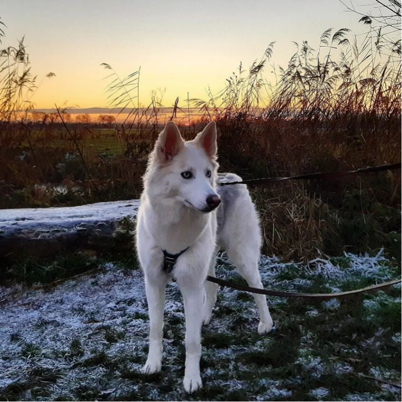 Dit is Nora Lola! Een heerlijke dramaqueen van 4 jaar. Nora is een Shepsky, ze is een kruising tussen een Zwitserse Herder en een Siberische Husky. Nora is gek op katten! Ze wil vaak met de katten spelen of hun kopjes wassen. Dit vinden de katten dan ook helemaal niet erg. Als iedereen moe is, vallen ze lekker knus tegen elkaar in slaap.
